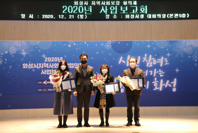 화성시장상에는 송명자 매송면 지역사회보장협의체 민간위원장을 비롯해 오범석(마도면), 김태익(향남읍), 안경화(우정읍) 위원이, 화성시의회 의장상에는 박서후(해피멘토협동조합 이사장), 조경래(동탄시티병원 과장), 신미라(까리따스이주민화성센터장), 박현순(꿈담요양원 원장)이 선정됐다.