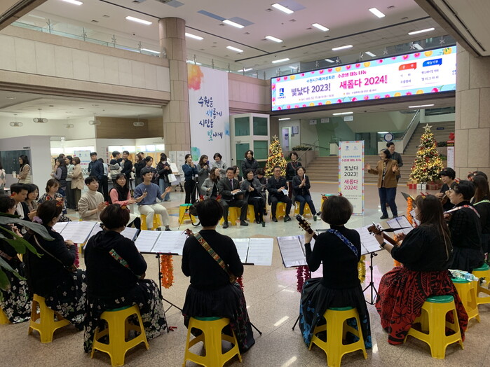 수원시 가족여성회관이 11일 시청 본관 로비에서 수강생들의 재능 나눔 행사 ‘빛났다 2023! 새롭다 2024!’를 열었다.
