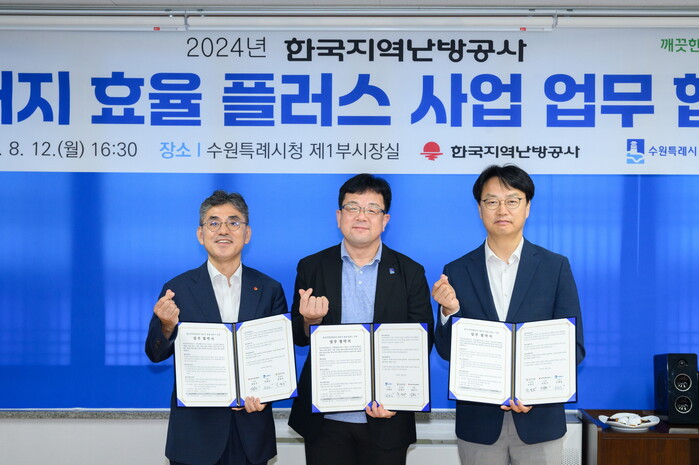 수원시(시장 이재준)는 12일 한국지역난방공사·한국에너지재단과 ‘에너지 효율 플러스 사업’ 업무 협약을 체결하고, 관내 사회복지시설의 에너지 이용 환경 개선을 위해 협력하기로 약속했다.