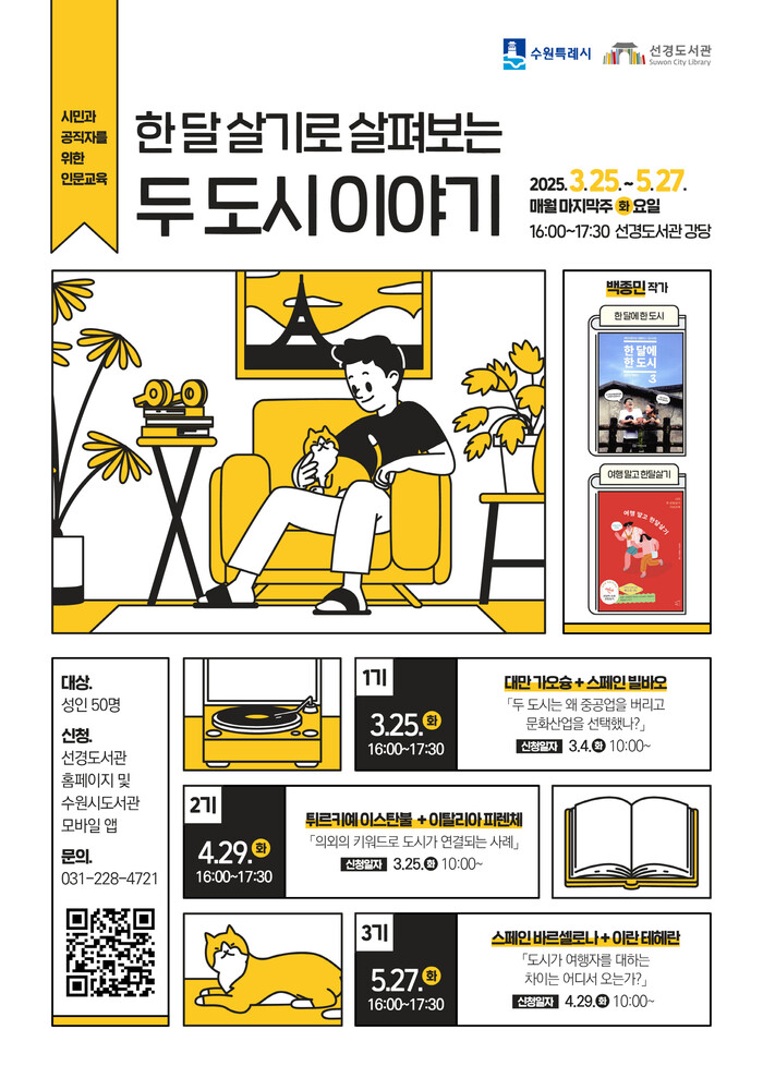수원시 선경도서관이 3월 25일부터 5월 27일까지 인문학 교육 ‘한 달 살기로 살펴보는 두 도시 이야기’를 연다.
