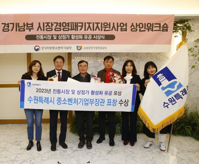수원시가 8일 더마레보 호텔에서 중소기업벤처부가 주관한 ‘2023 전통시장 및 상점가 활성화 유공’ 지자체 부문 중기부 장관상(기관표창)을 수상했다.
