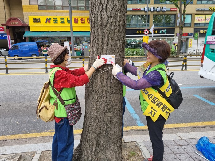 사진/수원시 가로수정원사봉사단이 캠페인을 전개하고 있다.(사진제공=수원시)