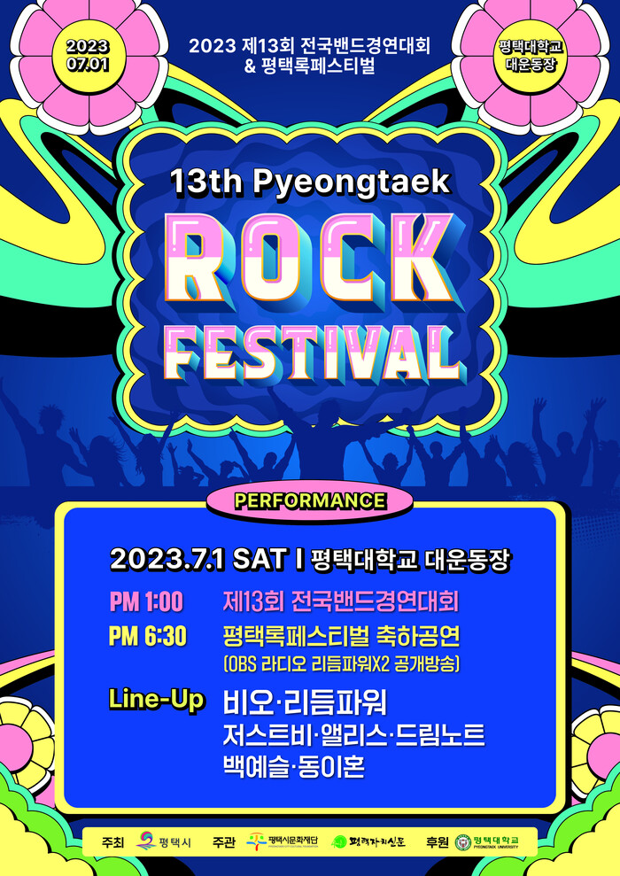 오는 7월 1일 평택대학교 대운동장 특설무대에서 ‘제13회 평택전국밴드경연대회 & 록페스티벌’이 펼쳐진다.
