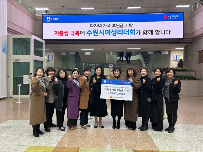 수원시 관계자는 “여성리더들의 다자녀 가정을 위한 따스한 손길은 타의 모범이 될 것”이라며 “수원시도 날로 심해지는 저출생을 극복하고, 아이 키우기 좋은 도시를 조성하기 위해 노력을 기울이겠다”고 밝혔다.