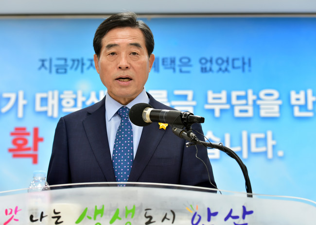 [로컬라이프] 안산시(시장 윤화섭)가 올해 전국 시 가운데 최초로 추진한 ‘안산시 대학생 본인부담 등록금 반값지원’에 대한 반응이 뜨겁다.