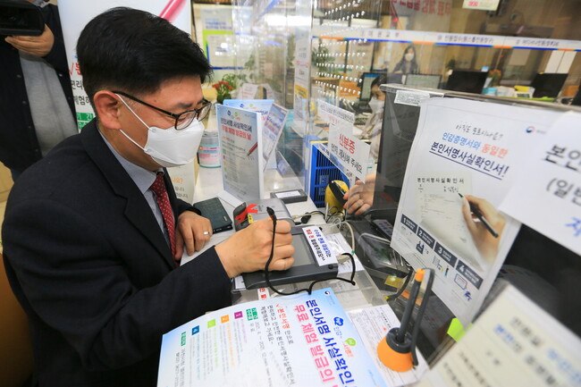 ‘본인서명사실확인서 무료 체험발급의 날’ 운영 첫날에는 과천시 공무원들의 참여를 독려하기 위해 김종구 부시장과 주요 수요기관인 NH농협 과천시청(출) 이상훈 지점장도 체험에 동참하였다. 한편, 다음 무료체험발급은 4월 15일 날 운영된다.