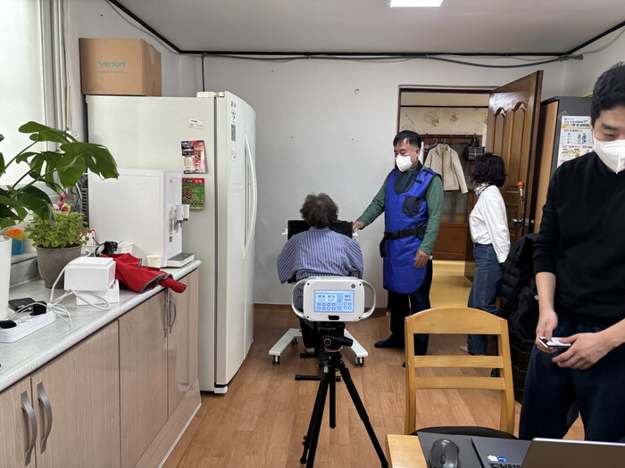 사진/영통구보건소 관계자가 경로당을 방문해 어르신들 대상으로 결핵검진을 하고 있다.(사진제공=수원시)