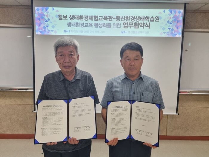 이날 협약식에는 류현상 칠보 생태환경체험교육관장, 정병준 맹산환경생태학습원장 등이 참석했다.
