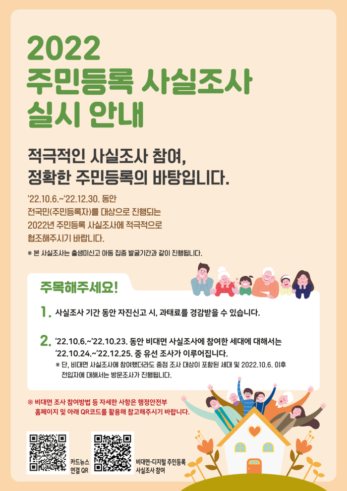 [로컬라이프] 수원시, 12월 30일까지 모든 시민 대상으로 ‘2022년 주민등록 사실조사’
