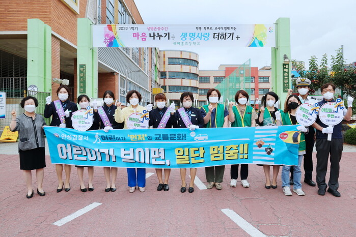 안성시(시장 김보라)가 16일 내혜홀초등학교 앞에서 어린이보호구역 교통문화 질서 확립 및 안전한 교통환경 조성을 위해 안성경찰서, 안성녹색어머니회, 안성모범운전자회, 내혜홀초등학교 등 유관기관·협력단체 관계자 약 40명과 합동으로 어린이 교통안전 캠페인을 전개했다.