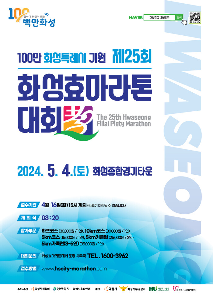 화성시(시장 정명근) 대표 행사 ‘화성 효 마라톤 대회’가 5월 4일 토요일 화성종합경기타운 일원에서 개최된다.