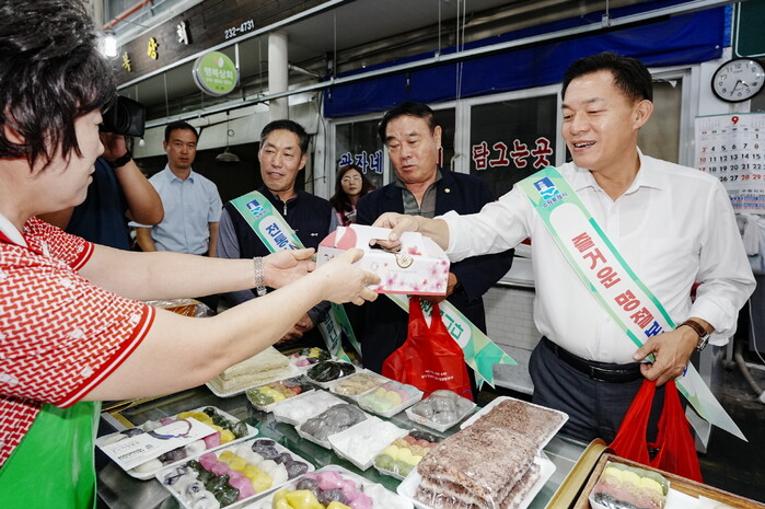 사진/ 지난 2023년 추석을 앞두고 이재준 수원시장이 수원의 한 전통시장에서 장을 보고 있다.(사진제공=수원시)