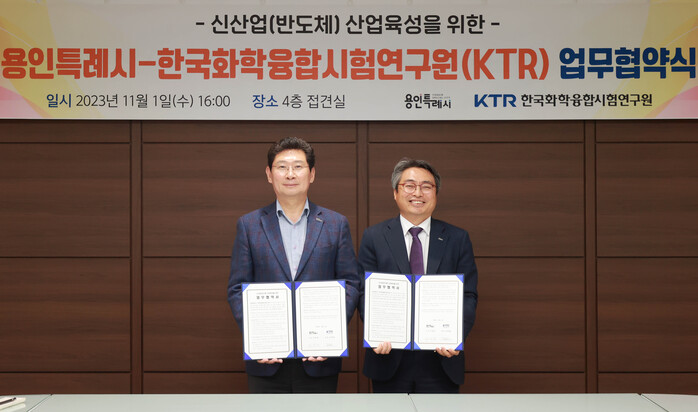 용인특례시(시장 이상일)는 1일 시장 접견실에서 산업통상자원부 산하 비영리법인인 KTR과 신산업(반도체) 사업 육성을 위한 업무협약을 체결했다고 밝혔다.
