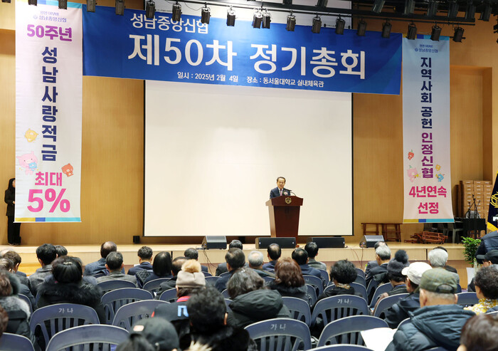 성남시의회 이덕수 의장, 서은경 의원, 박주윤 의원이 4일 동서울대학교 실내체육관에서 개최된 성남중앙신협(이사장 나영환) 제50차 정기총회에 참석했다.