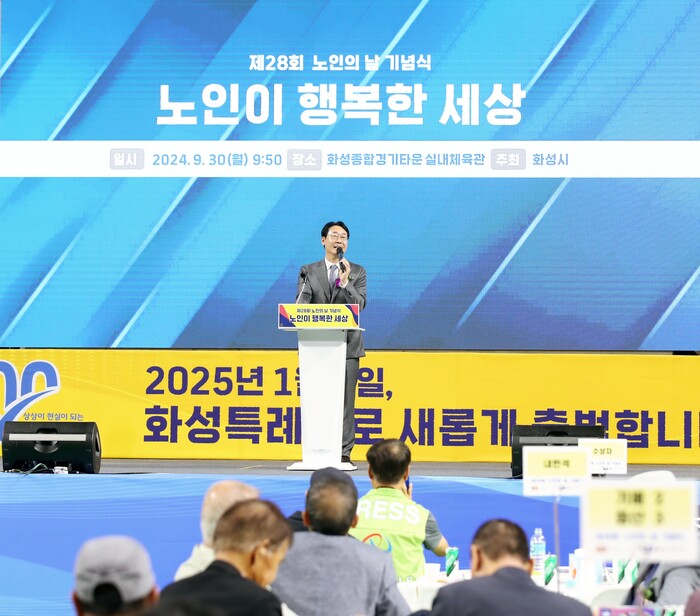 화성시(시장 정명근)가 30일 10월 경로의 달을 맞아 화성시종합경기타운 실내체육관에서 제28회 노인의 날 기념식을 개최했다.