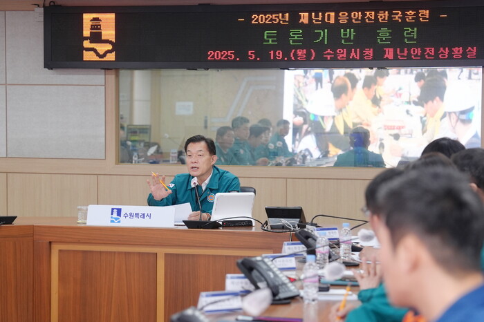 훈련은 현장훈련과 토론 기반 훈련을 실시간으로 연계해 진행했다. 시청 재난안전상황실에서 이뤄진 토론기반훈련은 재난안전대책본부 본부장인 이재준 수원시장이 주재했고, 수원SK아트리움에서 진행된 현장 훈련에는 재난현장 통합지원본부 본부장인 김현수 제1부시장, 경찰·군, 유관기관, 민간단체, 국민체험단 등 300여 명이 참여했다.
