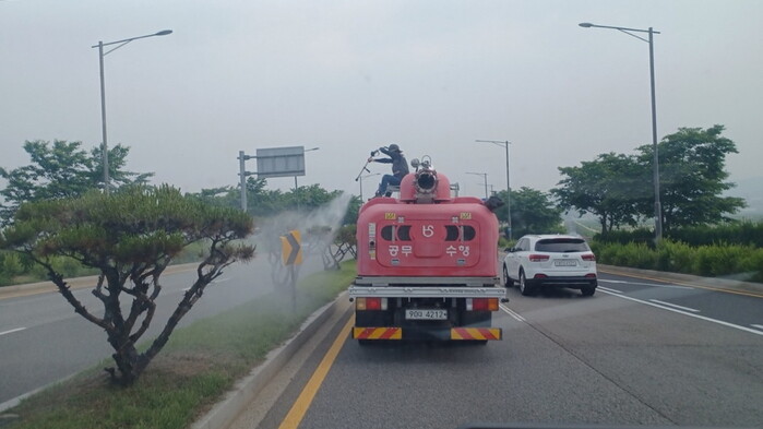 시는 산림병해충예찰방제단 20명을 5개 조로 편성해 피해가 극심한 지역과 민원 신고 지역, 개체수 밀도가 높은 지역 순으로 방제 구역을 설정해 방제를 시행하고, 관내 주요 가로수에 대해서는 수간주사 작업을 시행하고 있다.
