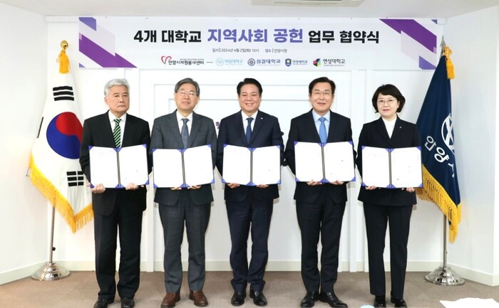 안양시 자원봉사센터(이사장 최대호)는 2일 관내 4개 대학교(대림대ㆍ성결대ㆍ안양대ㆍ연성대)와 지역사회 공헌을 위한 업무협약을 체결했다고 밝혔다.