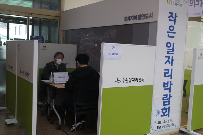 수원시가 3월 30일 시청 본관 1층 수원일자리센터에서 개최한 ‘3월 작은 일자리박람회’에서 현장면접을 거쳐 9명이 채용됐다.