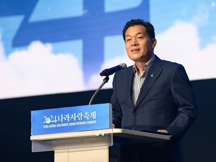 이재준 수원시장이 (재)FEBC 극동방송이 11일 수원컨벤션센터 전시홀에서 개최한 ‘2024 나라사랑축제’에서 개회선언을 했다.