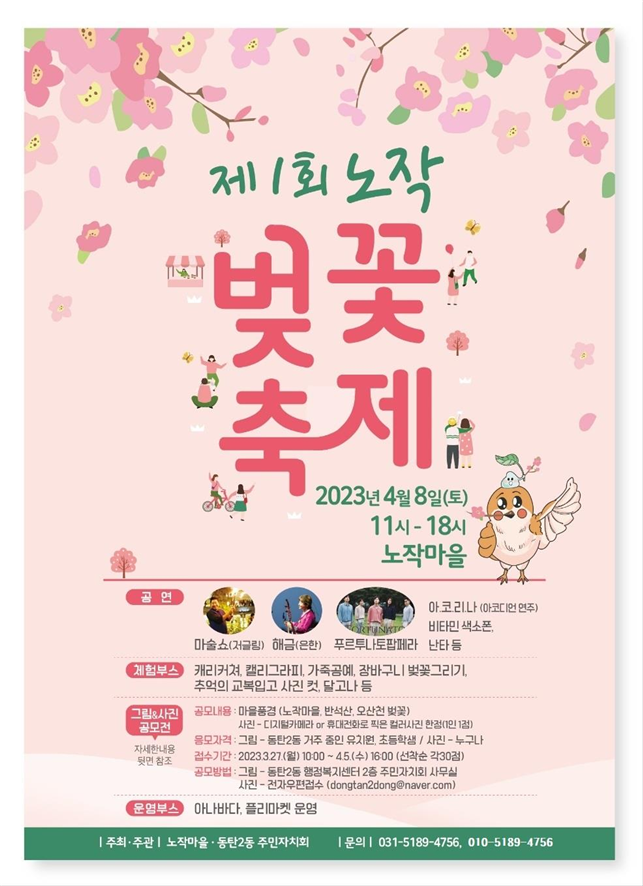 화성시 노작마을과 동탄2동 주민자치회가 8일 화성시 반송동 노작마을 곳곳에서 ‘제1회 노작 벚꽃축제’를 개최한다.