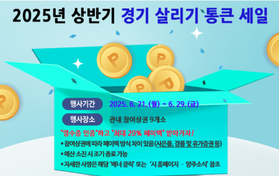 단, 구매 금액 조건이나 이벤트 참여 방식, 사은품 지급 장소는 상권별로 상이하여 구매를 희망하거나 행사 참여를 원할 경우 양주시청 누리집의 배너나 ‘양주소식’ 페이지에서 해당 상권의 세부 행사 내용을 확인해야 더욱 유용하게 참여할 수 있다.