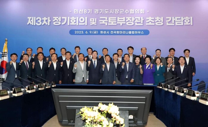 방세환 광주시장이 9일 화성시 전곡항마리나클럽하우스에서 열린‘경기도시장군수협의회 제3차 정기회의 및 국토교통부 장관 간담회’에 참석해 원희룡 국토부장관에게 광주시 주요 현안사항을 전달하고 신속한 검토와 협조를 요청했다.
