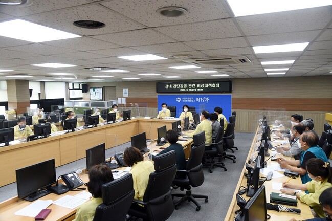지난 6월 30일 안병용 의정부시장 주재로 의정부시 부시장, 의정부교육지원청 교육장, 의정부학원연합회 회장 등 20명이 참석한 가운데 어학원 집단감염 관련 긴급대책회의를 개최했다.