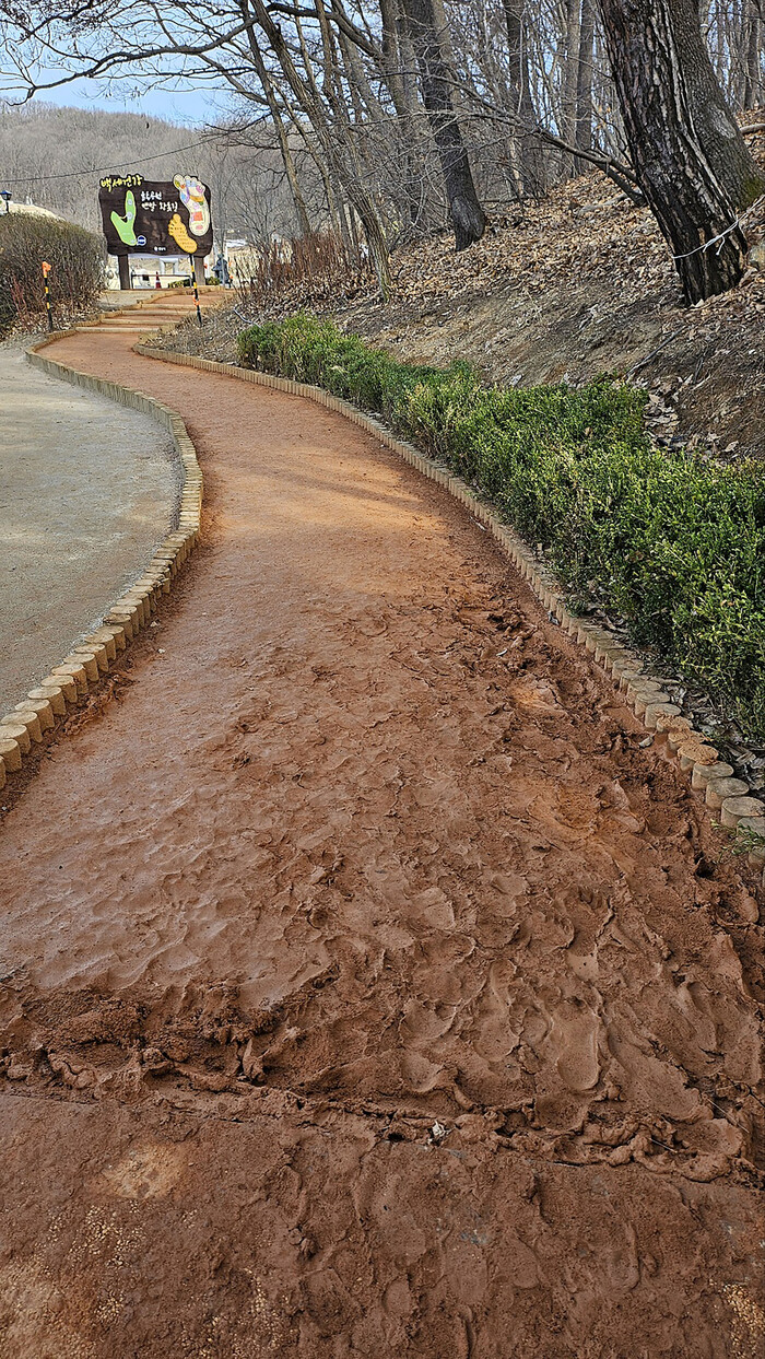 시는 오는 7월까지 산성공원, 희망대공원, 황송공원, 화랑공원, 이매동 공공공지 등 5곳에 맨발 황톳길을 추가 조성한다.