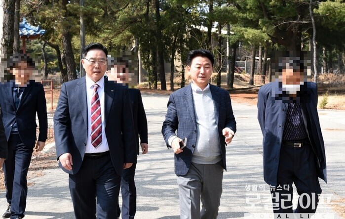 | ▲ 김동근 의정부시장(오른쪽)과 강수현 양주시장(왼쪽)이 미군 반환공여지 캠프 레드 클라우드(CRC) 현장을 점검하고 있다. (사진출처=김동근 페이스북) |