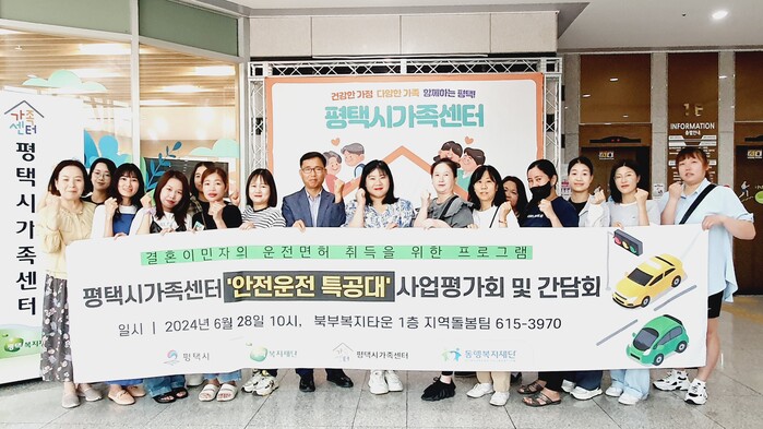 평택시가족센터(센터장 김성영)는 지난 6월 28일 센터에서 동행복지재단에서 지원하는 결혼이민자 운전 면허 취득 과정 ‘안전운전 특공대’ 사업평가 및 간담회를 진행했다.