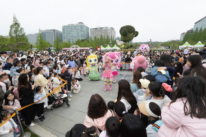 지난 5일, 고양국제꽃박람회가 열린 일산호수공원에 어린이날 깜짝선물 ‘티니핑’이 등장했다.