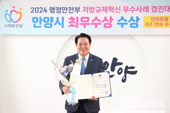 [안양=로컬라이프] 송준형 기자 = 안양시가 ‘2024 행정안전부 지방규제혁신 우수사례 경진대회’서 최우수상을 수상했다.