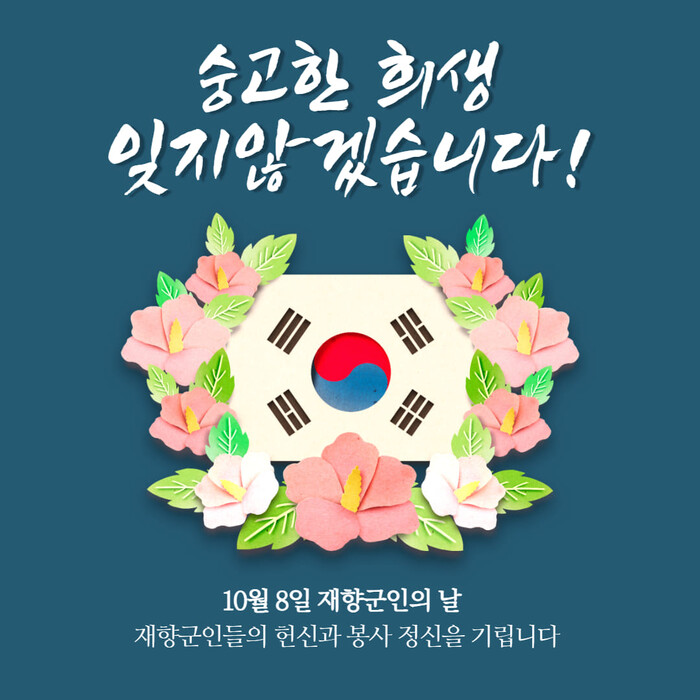 [로컬라이프] 송준형 기자 = 10월 8일은 재향군인의 날로 국토 방위에 대한 인식을 새롭게 하고, 재향 군인 상호간의 친목을 도모하기 위해 지정된 날이다.