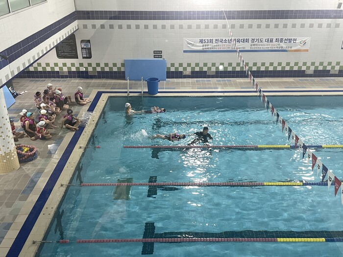 과천시는 수상 활동 중의 위기 대처능력 강화와 안전의식 함양을 위해 관내 5개 초등학교 3, 4학년을 대상으로 ‘생존수영 실기수업’을 5월부터 청소년수련관 수영장에서 실시하고 있다.