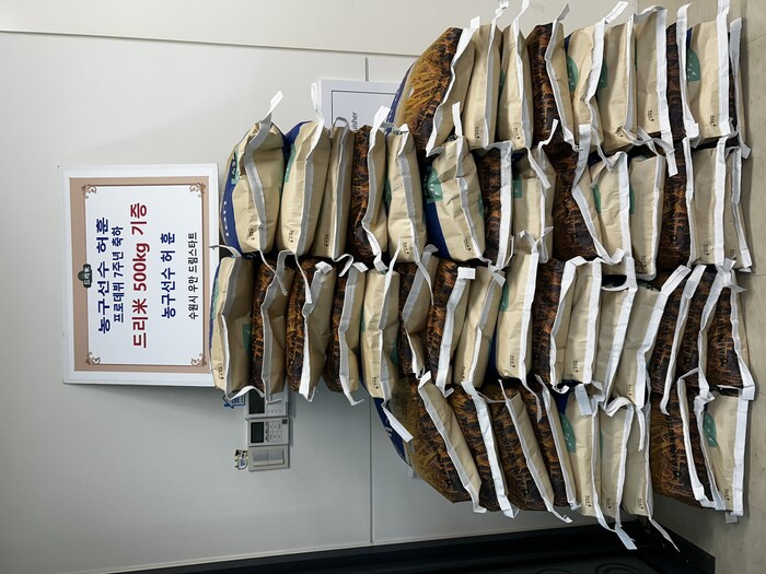 사진/허훈 팬이 기부한 쌀.(사진제공=수원시)