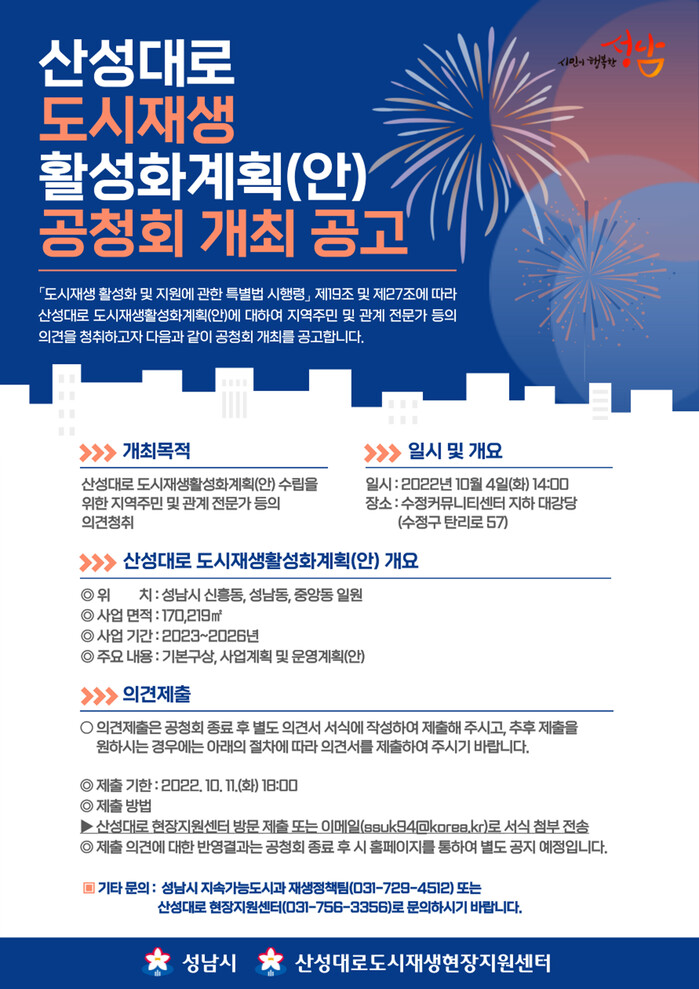 산성대로 도시재생 계획안을 확정 시행하기 위한 사전 절차다.