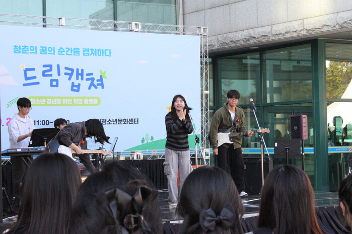 사진/ 지난달 26일 수원청소년문화센터 야외광장에서 2024 청소년동아리 대축제에 참가한 한 청소년 동아리가 공연을 하고 있다.(사진제공=수원시)