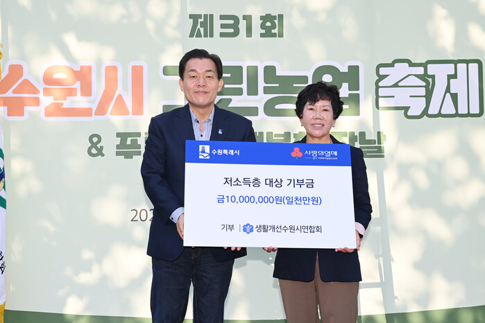 수원시농업기술센터가 육성하는 생활개선수원시연합회가 “생활에 어려움을 겪는 수원시 저소득층 가정에 전달해 달라”며 경기사회복지공동모금회에 1000만 원을 기부했다.