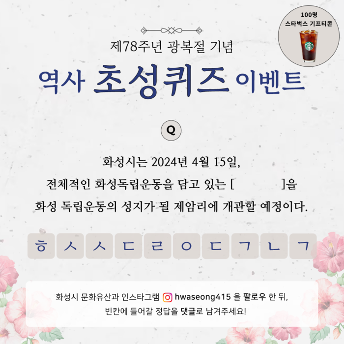 화성시(시장 정명근)가 제78주년 광복절을 맞아 SNS 이벤트를 운영한다.