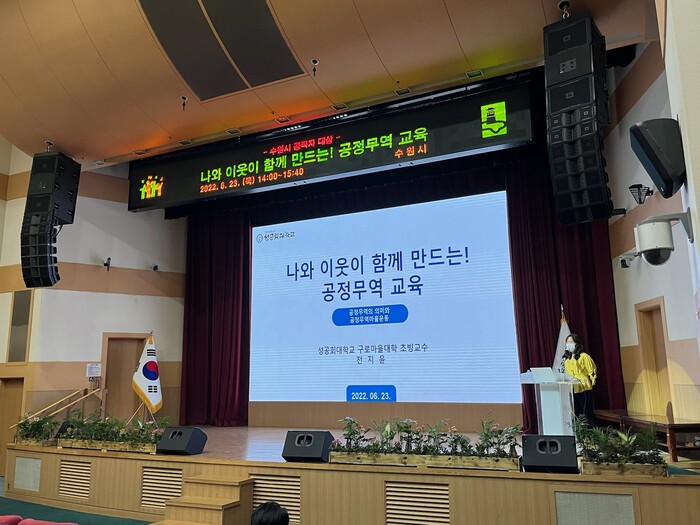 사진/23일 시청 대강당에서 열린 ‘2022년 공정무역 교육’(사진제공=수원시)