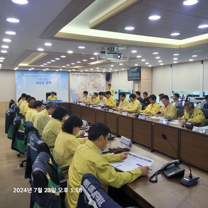 평택시(시장 정장선)는 지난 18일 최대 누적 강우량 205㎜ 시간당 최대 강우량 88.6㎜의 폭우가 내렸다. 지난 19일 정장선 시장 주재의 집중호우 대처 관련 보고회에 이어 임종철 부시장은 지난 23일 오후에 재난안전상황실에서 열린 ‘대책 보고회’에서 집중호우로 인한 피해 상황을 점검하고, 7월 말까지 신속한 복구 작업을 지시했다.