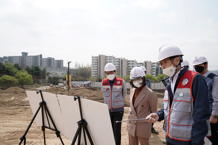 경기 성남시 은수미 시장은 12일 오전 수정구 태평동에 위치한 밀리언 근린공원 공사 현장을 방문해 공사 추진 현황을 살폈다.