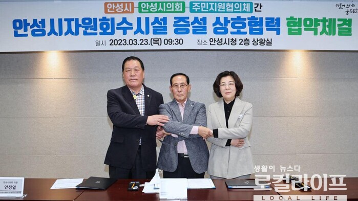 안성시와 안성시의회, 주민지원협의체는 23일, 안성시청 2층 상황실에서 '안성시 자원회수시설 증설 상호협력 협약'을 체결했다.