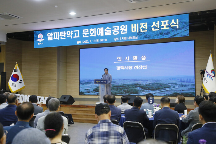 평택시(시장 정장선)는 13일 시청 대회의실에서 시민 150여 명이 참석한 가운데 알파탄약고 문화예술공원 비전 선포식을 개최했다.