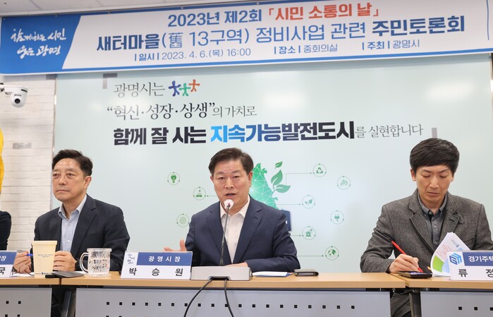 광명시(시장 박승원)가 사업 추진방식을 놓고 주민 간 의견이 대립하고 있는 새터마을(舊 13구역) 주민들과 소통하며 해법을 모색했다.