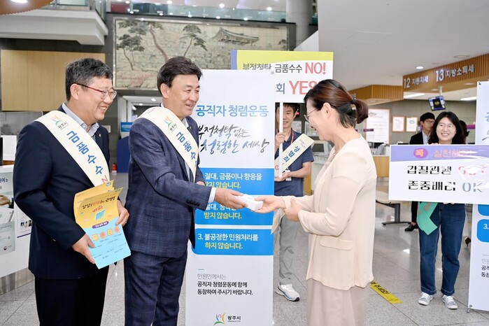 [로컬라이프] 송준형 기자 = 방세환 경기 광주시장은 5일, ‘청렴 실천 및 갑질 근절’ 캠페인을 실시하며, 출근길 직원들을 격려했다.