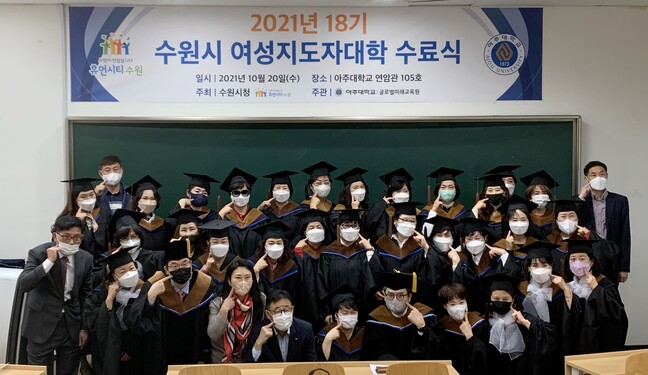 수원시가 20일 오전 10시 영통구 아주대학교 연암관에서 ‘제18기 수원시 여성지도자대학’ 수료식을 개최했다.