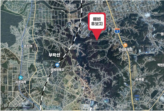 예비후보지는 은산1리 태봉산 자락의 약 7만 평(산림 5만 평, 농경지 2만 평)으로, 시는 장사시설은 농경지에, 레포츠공원 등 주민 편익 시설은 마을과 인접한 곳에 조성하고 산림은 녹지공간으로 보존할 계획이다.