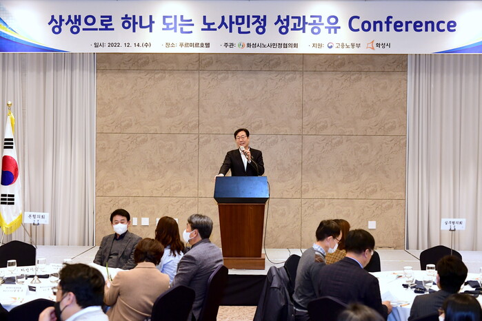 화성시노사민정협의회(위원장 정명근 화성시장)가 2022년 노사민정 성과공유 콘퍼런스를 개최하고 유공자 표창과 노사민정 상생을 위한 협력방안을 마련했다.
